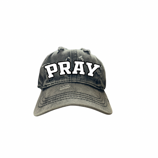 Distressed Denim "Pray" Dad Hat